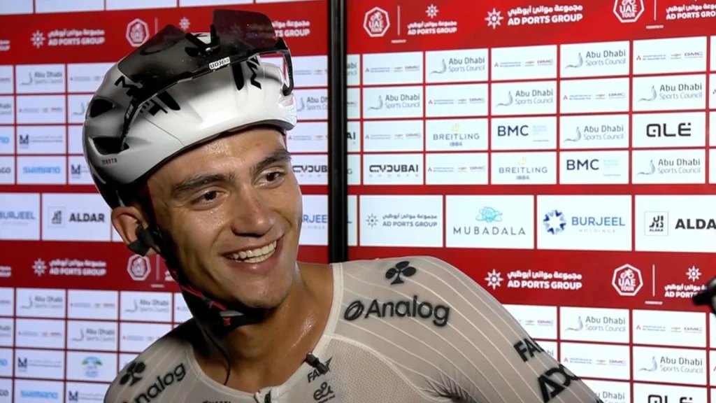 La séptima etapa en Abu Dabi fue otra historia: un esprint bestial del italiano Jonathan Milan que lo llevó a su tercera victoria parcial. Del Toro no estaba ahí para disputarla. Su misión era otra: evitar que Tiberi recuperara los 20 segundos perdidos.
